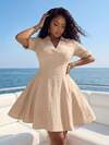 EMERY ROSE 大码纯色翻领短袖休闲迷你连衣裙,简约风格,女士夏季穿搭