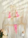 2 件套霓虹粉色蕾丝拼布透明性感内衣套装女士