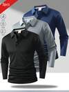3 件男士透气长袖 Polo 衫,适合跑步、健身、高尔夫、休闲运动、春秋季