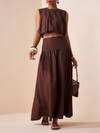 Zivah 2026春季新款深棕色无袖圆领荷叶边下摆上衣和A字中长裙套装(2件套)