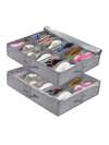 1個床底鞋子收納盒,可摺疊織物鞋盒帶透明蓋和窗戶,帶2個手柄的收納袋