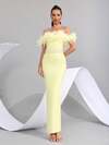 人造羽毛重点缀珍珠性感露肩露背紧身黑色绷带长裙,优雅女士婚礼宾客伴娘派对晚礼服