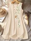 Serisse 女士圆领无袖复古宽松碎花两件套,夏季休闲装