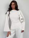 Aloruh 女士船领喇叭袖短款褶皱OL衬衫,秋季上衣,优雅女式衬衫