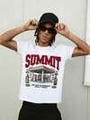男士极简主义加油站字母印花圆领短袖T恤,夏季