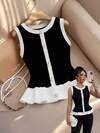 SHEIN LUNE 女士三件套黑白格子秋季套装,2024新款时尚别致防晒衬衫、修身西装外套、阔腿裤,夏季套装,休闲装