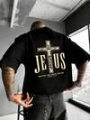 新款时尚男士T恤 “耶稣字母”印花 圆领短袖休闲宽松T恤