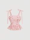 SHEIN MOD 粉色花卉印花浪漫风格蝴蝶结上衣,情人节上衣,结婚纪念日上衣,约会上衣,可爱上衣,娃娃衫上衣。