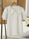 EMERY ROSE 女式可爱韩版多莉领短袖衬衫,百搭打底衫或外套,春夏