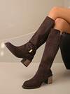2025秋冬新款复古过膝高筒马靴女粗跟长靴配皮带扣西部牛仔靴