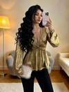 Elenzga 女士秋季派对V领扭结前腰褶皱A字上衣