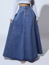 SHEIN SXY 女式前扣超长休闲牛仔长裙