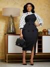 女士长款印花拼接连衣裙,双排扣设计,配有仿口袋,优雅高领修身开衩下摆,饰有仿纽扣和口袋,适合春秋季度假、婚礼、办公、休闲约会和早午餐等场合。