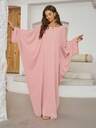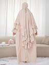 1 套柔软穆斯林礼服套装,宽松大码 Abaya 长裙,正面有褶皱设计,搭配纯色头巾,经典百搭