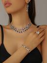 3 件/套时尚水钻项链、耳环、手链,适合日常或婚礼浪漫场合等。
