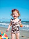 女婴向日葵印花荷叶边装饰沙滩装和服夏季海滩装