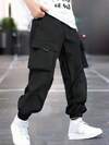 SHEIN 青少年男孩宽松纯色抽绳腰运动裤
