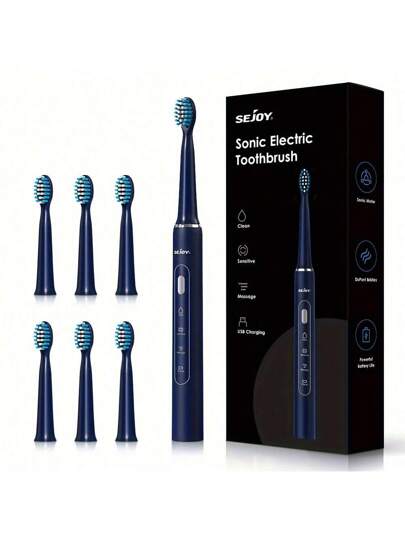 Sejoy Electric Toothbrush With 7 Brush Heads For Adults And Teens, 3 Personalized Modes With 2 Minutes Build In Smart Timer, IPX7 Waterproof,For Home And Travel - 藍色 - 查看 1