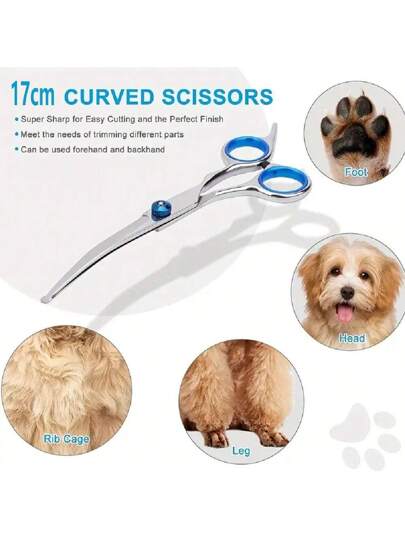 专业宠物美容剪刀,圆头,不锈钢刀片,适用于猫狗 - 精准修剪 - 藍色 - 查看 11