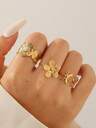 1入時尚簡約甜美不褪色不鏽鋼空心愛心開瓶器戒指,適用於女性派對和日常穿著