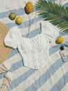 Comfortcana 白色编织系带衬衫,心形领,短袖上衣