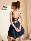 Breezaya 花卉印花肩带中长连衣裙,女式波西米亚风露背,结饰,褶皱胸部无袖细肩带常规款式短款黑色碎花吊带女式短裙,春夏,休闲日常穿着迷你短款女装