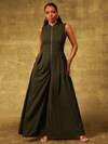 Vixey 平纹针织前拉链褶裥腰部裤裙连体裤