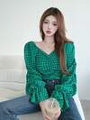 SHEIN MOD 女式休闲撞色领拼布千鸟格衬衫,秋冬,秋季学院风衬衫,感恩节衬衫,纽扣衬衫,基本款喇叭袖衬衫,工作衬衫,工作服,正装衬衫,商务休闲女装,办公室衬衫,,