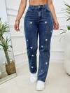 DAZY 休闲洗水蝴蝶刺绣直筒牛仔裤