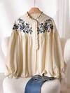 CosyJoli 大码荷叶边刺绣纽扣衬衫