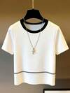 Franclia 法式风格女士白色T恤,白色上衣,黑色滚边,适合海滩、夏季、办公室休闲穿着,百搭时尚,日常休闲穿着,都市职业教师必备,女士夏季服装,夏季上衣,夏季,女士户外上衣