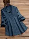 女士长袖翻领衬衫,常规版型,涤纶面料,纽扣细节,侧边口袋