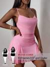 SHEIN PETITE CURVE 大码女式度假黑色碎花层叠下摆吊带腰豹纹连衣裙