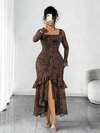 Vibekara 春夏秋三季优雅度假风法式复古雪纺蕾丝蝴蝶结装饰软腰显瘦吊带荷叶边长袖连衣裙女式短裙喇叭裙