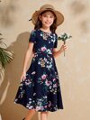 SHEIN 女童休闲印花收腰长连衣裙,适合日常穿着和通勤。