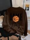 青少年男童休闲运动风篮球图案圆领长袖卫衣,秋冬季学生男装