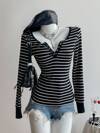 SHEIN Unity 女士春夏拼色翻领长袖 T 恤休闲风格图案 T 恤女士上衣春季服装