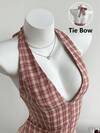 Elamini 女士休闲性感露背系带格子连衣裙