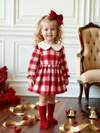 2件套女童红色罗纹小熊印花蝴蝶结装饰长袖上衣和罗纹裤睡衣套装