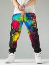 男士时尚街头朋克风全迷彩印花运动裤,必备单品,个性宽松街头时尚阔腿裤
