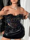 SHEIN ICON 蕾丝黑色紧身胸衣吊带背心,夏季