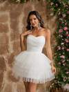 Faeriesty 浪漫无肩带婚纱,层叠荷叶边薄纱裙摆,A字廓形,完美适用于经典婚礼、毕业典礼、晚宴等场合。