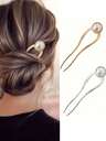 优雅三齿珠U型发夹,盘发发夹,复古发夹 - 黑白配色,饰以绿色合成宝石,适合休闲和正式场合,四季皆宜的女孩发饰,发饰,经典发夹,高品质发夹,装饰发夹,时尚女孩,盘发延长器,盘发器,盘发片,发型发夹,发卡