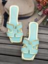 新款女士平底凉鞋,方头设计,多巴胺配色,一体式几何造型,套脚式,轻便舒适,混搭风格,春夏户外休闲度假沙滩拖鞋