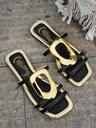 新款女士凉鞋,平底方头设计,搭配高端金色搭扣,套穿式,轻便舒适,百搭易配,适合居家、春夏户外、休闲、乡村度假、街头时尚、海滩等场合。