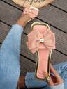 新款女士平底方头凉鞋,精致蝴蝶结装饰,高端品质,轻便舒适,套脚式,休闲乡村度假风沙滩凉鞋