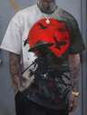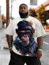 男士 3D 数码印花两件套,街头风格拼色,休闲透气图案,加大码 T 恤和短裤套装,夏季舒适服装