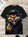 3D数码印花鲨鱼图案男士T恤,创意休闲透气男士衬衫短袖家居服,夏季清凉上衣