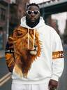 加大码男士3D数码印花复古美式加州图案口袋连帽衫和裤子套装,秋季服装