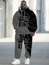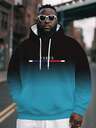 男士加大码 3D 数码印花渐变色 K 字母口袋连帽衫和裤子套装,连帽衫和裤子两件套,秋季服装